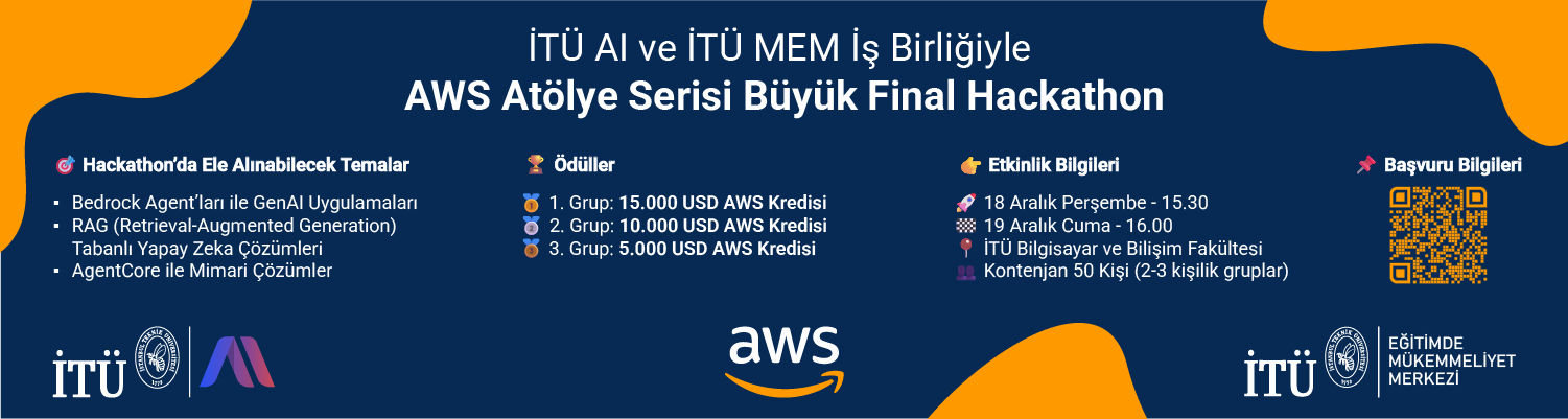 İTÜ AI ve İTÜ MEM iş birliğiyle, Amazon Web Services Türkiye destekli AWS Atölye Serisinin büyük finaline gelmiş bulunuyoruz!
